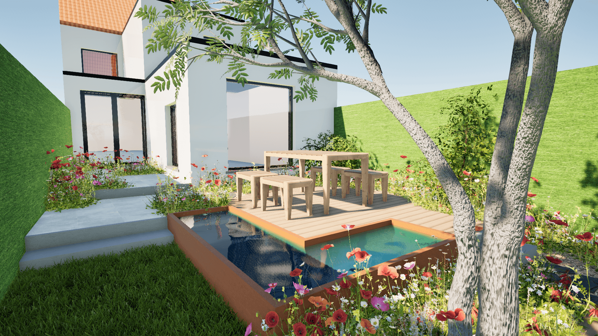 Onze doelstelling bestaat erin het realiseren van duurzame, ecologische en biodiverse groene ruimtes. Onze ontwerpen worden één met het landschap, waardoor landschap en ontwerp elkaar versterken en een natuurlijke eenheid vormen. We trachten de lokale biodiversiteit te bevorderen aan de hand van waterbuffering en een ecologisch doordachte plantenkeuze. We dragen duurzaamheid hoog in het vaandel, waardoor we enkel met kwalitatieve en verantwoorde materialen werken. De ontwerpen creëren een gevoel van harmonie tussen mens en natuur, waarbij de esthetiek vanuit elke hoek dit gevoel versterkt.