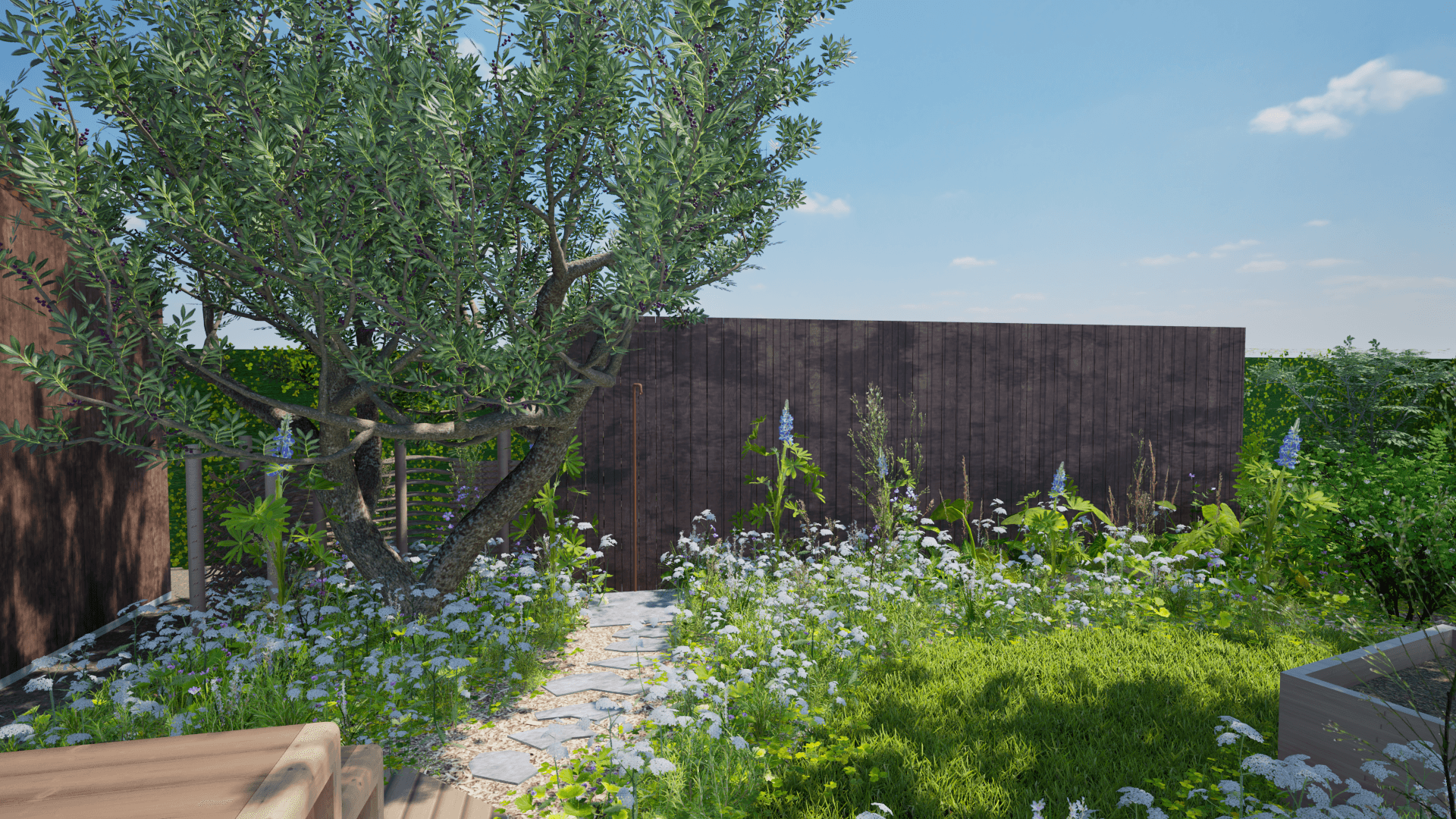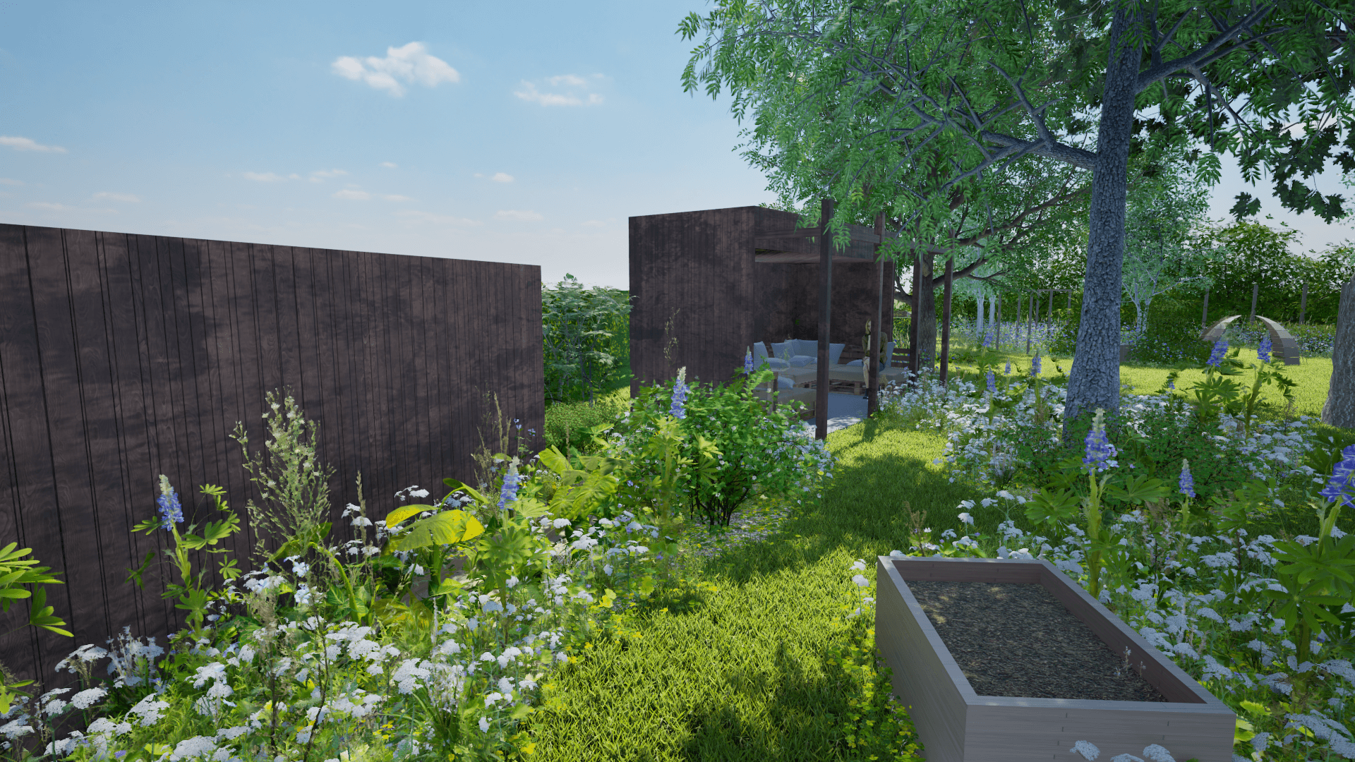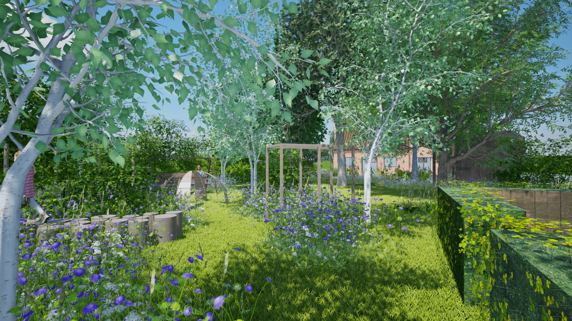 De wadi draagt bij aan een duurzaam waterbeheer, terwijl bloemrijk grasland en een takkenwal de biodiversiteit versterken. De keuze voor inheemse soorten en natuurlijke materialen zoals padoek, flagstones en grindverharding ondersteunt de ecologische visie van het ontwerp.