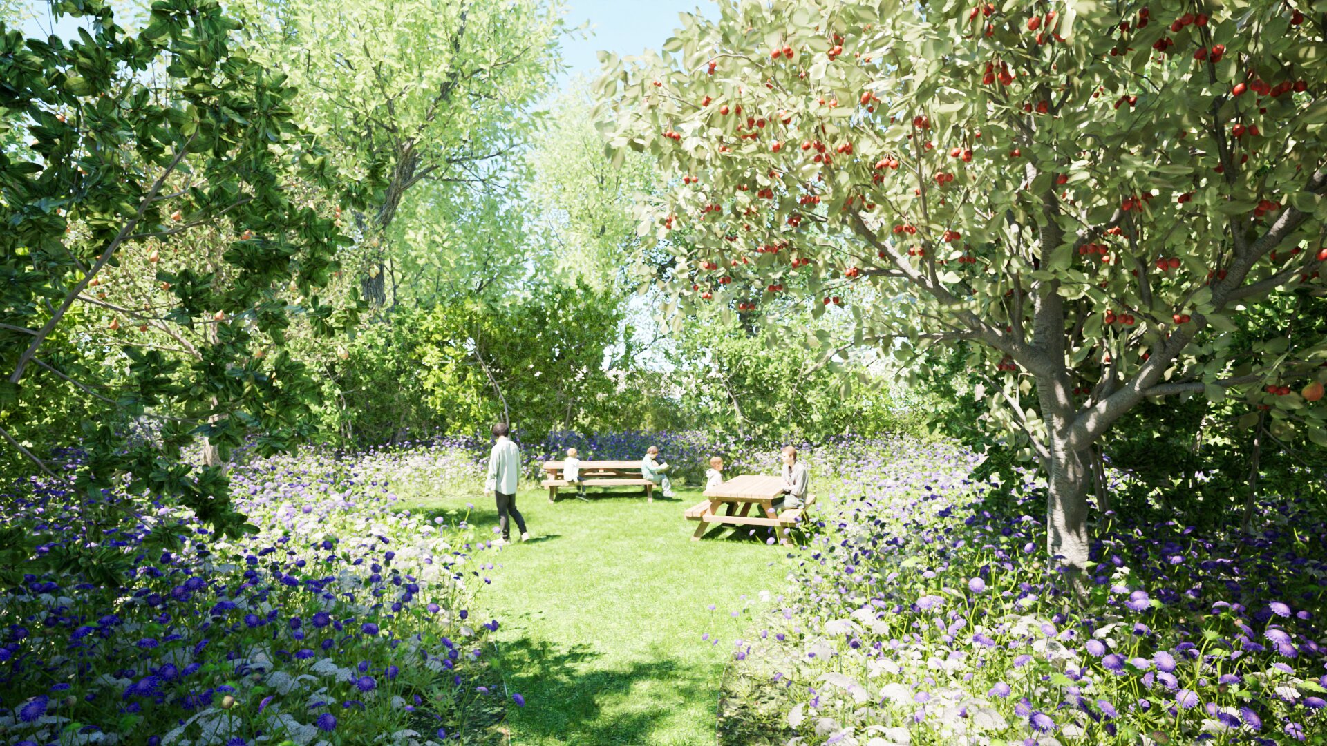 Achteraan het terrein werd een pluktuin aangelegd waar leerlingen kunnen proeven, ruiken en beleven. Fruitbomen, bessenstruiken, eetbare kruiden en bloemen stimuleren de zintuigen en geven ruimte voor educatie, verzorging en rust. Deze tuin vormt een fijne plek voor begeleide activiteiten én spontaan natuurcontact.